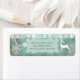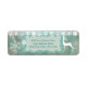 Holiday return address labels with a pretty blue background with lots of snowflakes, a white silhouette deer, and a blue frame where you can add your name and address before ordering.