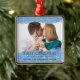 Elegant custom Christmas photo ornament with blue snowflakes borders. Personalise with your own message and names.