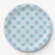 Blue Snowflakes Diagonal Square Pattern Paper Plate