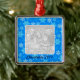 Bright blue snowflake pattern on a Christmas photo ornament. Create a personalised keepsake for the family by changing the label on lower border.