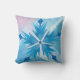 Beautiful snowflakes throw pillow features a blue and lavender with small muted snowflakes on front with a big watercolor blue snowflake in the centre, the back features a muted lavender, pink, and blue background with lots of pretty blue watercolor snowflakes in various shapes and sizes!