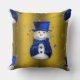Blue Snowman on Gold Christmas Cushion