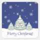 Spread holiday cheer with this festive Blue Snowy Christmas Tree Sticker. Sticker design features a trio of snow covered decorated Christmas Trees against a blue background. Additional gift and holiday items available with this design as well.
