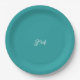 Blue solid colour trendy pastel initials name paper plate