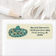 These custom return address labels feature my illustration of a sombrero in turquoise blue and are ready to be personalised with your name and address in dark teal coloured lettering. The text and graphic are set against a cream coloured background.