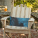 Out of this world pillow with a black and blue galaxy space pattern design as the background.