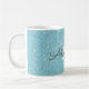 Teal Aqua Blue Sparkle Glitter Monogram Name and Initial Coffee Mug. The mug makes the perfect gift for someone who loves blue.