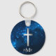 Blue Sparkle Lights Silver Cross Monogram Key Ring