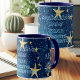 Blue Sparkling New Year Glitter Stars Floral Party Mug