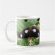 This stunning mug features a photograph of a beautiful tropical butterfly. This species is mainly black with beautiful iridescent bright blue spots on each wing. The photograph was taken using macro photography for a stunningly detailed result.