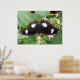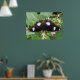 This beautiful poster features a photograph of a beautiful tropical butterfly. This species is mainly black with beautiful iridescent bright blue spots on each wing. The photograph was taken using macro photography for a stunningly detailed result.