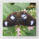 This awesome clock features a photograph of a beautiful tropical butterfly. This species is mainly black with beautiful iridescent bright blue spots on each wing. The photograph was taken using macro photography for a stunningly detailed result.