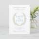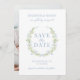 Experience sophistication with this elegant and modern rustic Save the Date invitation, adorned with watercolor delicate blue flower blooms arranged in a delicate wreath. Personalise the invitation further with a couple's photo included on the back.