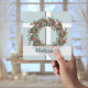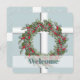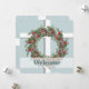 A window to the outside winter snowfall. This card has the design of a window with a Christmas wreath hanging in front. The theme continues on the back, where your event information is in the center. I love the soft color of blue-green, along with the “window look”, and the gentle snowfall. Blessings!