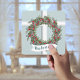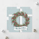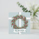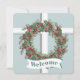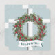 A window to the outside winter snowfall. This card has the design of a window with a Christmas wreath hanging in front. The theme continues on the back, where your event information is in the center. I love the soft color of blue-green, along with the “window look”, and the gentle snowfall. Blessings!