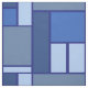 This pattern is created in the style reminiscent of Piet Mondrian. Blue shapes, squares and rectangles outlined in an ultramarine blue border. Varying shades of blue include sky blue, grey blue, and verditer blue. This abstract design focuses on form, shape and colour to evoke an emotional reaction, which speaks to our intuition, experiences and subconscious.