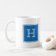 Add your initials or other text to customise this simple and modern Square Monogram Mug in blue and white. This trendy and chic mug is perfect for your morning coffee.