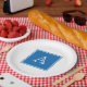 Add your initials or other text to customise this simple and modern Square Monogram Paper Plates in blue and white. These trendy and chic plates would be perfect for a simple and casual affair.