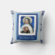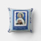 Gorgeous silver and decorative pillow with St. Therese of Lisieux holding the crucifix with flowers. Under the image are the word's "Jesus I trust in You."