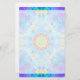 A blue, yellow and orange hippy style mandala kaleidoscope pattern with stars.