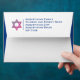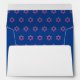 Blue Star of David envelopes suitable to use with HOLOCAUST REMEMBRANCE DAY cards and invitations. Also great to use for any Jewish celebration or occasion. Design shows a tiled pattern of coloured Star of David against a blue background on the inside, and the back top flap has another Star of David plus customisable address for you to replace with yours. On the front there is a blue border. Matching items available. Return address labels available separately.
