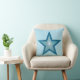 Modern design with a "shining" blue and white star on a pale blue background your choice of text on the back. Throw pillow with a customisable design for you to personalise with your own text, images and ideas. This is a digital art image created using original photographs and digital techniques and printed onto fabric, it does not shine or contain real sparkles.