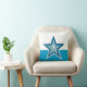Modern design with a "shining" blue and white star on a white and blue background. Throw pillow with a customisable design for you to personalise with your own text, images and ideas. This is a digital art image created using original photographs and digital techniques and printed onto fabric, it does not shine or contain real sparkles.