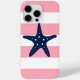 Blue Starfish on Pink Stripes Case-Mate iPhone Case