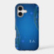 Stylish phone case featuring a blue starry night. Your initials are printed in a nearly white font on the lower part (or remove them if you prefer a quiet and peaceful night). Blue radiates from the centre, featuring stars and sparkles, lines, and clouds. An elegant design that appeals men and women alike.