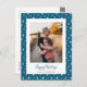 Custom blue photo holiday postcards featuring stars and a beautiful festive script title. Easily personalise these blue photo holiday postcards with your image and a family name. Custom Merry Christmas title available inside the design tool - make it visible by customising this template further. The background, title and text can be personalised to any colour.