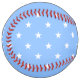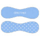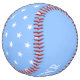 One half has a pattern of white stars on a light blue background. The other half is plain blue with a custom name in white.