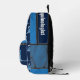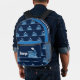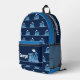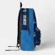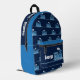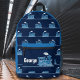 Blue puffing steam train boys backpack. Personalise with your child's name, perfect for library or school. Currently reads George and George on boiler plate plus George - Super Ferroequinologist along the top flap, add your own name maybe your family name class and own message. Part of the kids graphic steam train range. Background colour can also be changed to your own colour choice currently in dark blue. A perfect gift for boys to take to school or as a gift to a train or railway transport fan. Original steam train graphic art and design by Sarah Trett exclusively for www.mylittleeden.com on zazzle.