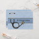 A sophisticated blue on blue design with a wide bold stripe trimmed in black and gold holds the new doctor's name next to a stethoscope.
