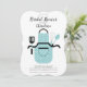 Start off your event off right with our fun retro kiss the cook kitchen Bridal shower invitation featuring an apron & whisk, spatula & spoon in turquoise blue & white. Just customise our invitation with your shower information and you're all set to go.