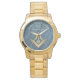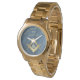 Stylish gold square and compass Masonic symbol personalised watch with an elegant blue stone clock face.