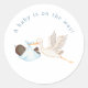 Seal your invitation envelopes or favours with these adorable stickers. Featuring a watercolor stork with baby wrapped in a blue blanket. Coordinates with the Watercolor Stork collection found in the Adore Paper Co. Zazzle Shop.