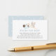 A book request insert card for baby shower. Featuring a watercolor stork carrying a baby wrapped in a blue blanket with poem: "ONE SMALL REQUEST, WE HOPE NOT TOO HARD