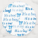 This cute table confetti set is perfect for a baby shower, especially when the expected little one is a boy! In tones of blue, the feature is an image of a stork carrying that precious blue bundle and wearing a blue striped cap. The image is placed on a white background decorated with blue stars. Other images include a heart and a pattern of multiple storks on blue. Blue typography stating "It's a Boy!" is on the back of the largest piece. Wonderful for a gender reveal party!