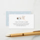 Customise the text of this enclosure card to fit your needs! Featuring a watercolor illustration of a stork carrying a baby wrapped in a blue blanket.