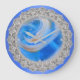 10.75” round acrylic wall clock with an image of blue glass with streaks of white and orange in an ornate jeweled silver frame. See the entire Under the Sea Clock collection in the Decor | Clocks section.