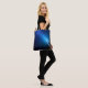 A beautiful transition of blue to bluish white tones and dark blue to black tones along the perimeter under cut with reddish brown tones at the end part of the elongated cube stacks.<br><br>Blue Streak Stack PAOM Tote