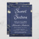 Blue String Light Mason Jar Sweet 16 Birthday Invitation