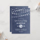 Chic modern summer graduation party invitation design with simple elegant glowing string lights hanging across the top and a classy mix of modern and calligraphy script fonts on a printed faux watercolor texture background. A simple and stylish preppy design, perfect for summer! Click the CUSTOMIZE IT button to customise fonts, move text around and create your own unique one-of-a-kind invitation design.
