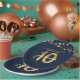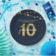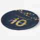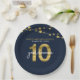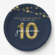 Throw a 10 Year Class Reunion and impress guests with matching paper plates. This stylish plate features strings of lights and "10" in faux gold with "year reunion" in white against a dark blue background. Check out matching invitations and items like stickers here https://www.zazzle.com/collections/school_reunion-119258151199573326?rf=238364477188679314