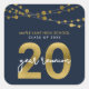 This elegant 20 Year Class Reunion square sticker features strings of lights and "20" in faux gold foil with "year reunion" in white against a dark blue background. Check out matching invitations and other items here https://www.zazzle.com/collections/school_reunion-119258151199573326?rf=238364477188679314