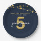 Throw a Five Year Class Reunion and impress guests with matching paper plates. This stylish plate features strings of lights and "5" in faux gold with "year reunion" in white against a dark blue background. Check out matching invitations and items like stickers here https://www.zazzle.com/collections/school_reunion-119258151199573326?rf=238364477188679314