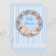 Blue Stripe Baby Shower Invitation with Sleeping Baby in Floral Wreath
