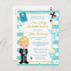 Cute blonde boy blue holy first communion design with blue striped background and gold foil confetti. Graphics by Mujka and KlouiseDigiArt on Etsy.