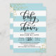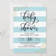 Blue Stripe Glitter Dots Baby Shower Invitation