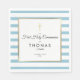 Simple blue stripe First Holy Communion paper napkin featuring a gold cross with an elegant faux gold foil border that frames your special celebration event details set in modern typography. Designed by Thisisnotme©